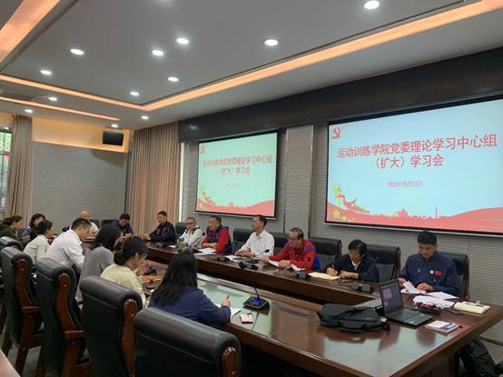 2023年10月13日,运动训练学院党委在健康大厦多功能厅召开理论学习中心组(扩大)学习会,学院党委委员及各支部书记参加会议,会议由党委书记彭健书记主持。