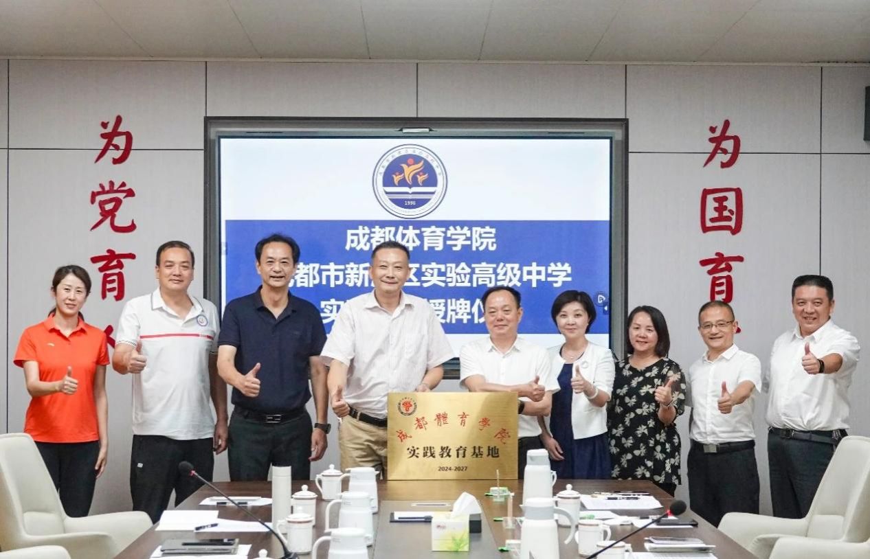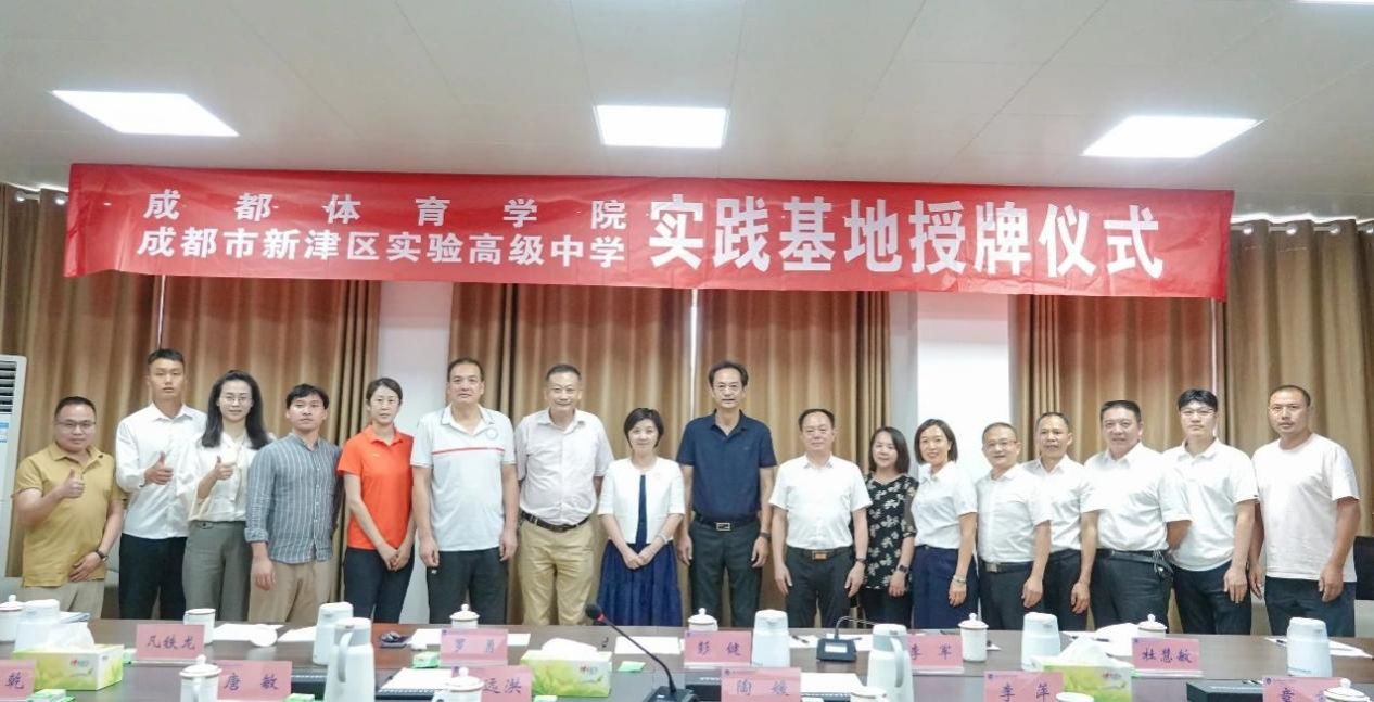 2024年7月10日,运动训练学院实践教育基地签约挂牌仪式在成都市新津区实验高级中学进行,运动训练学院党委书记彭健、院长李军、副院长罗勇、跆拳道与摔跤教研室主任杜慧敏及本科生管理第四办公室全体成员参加。