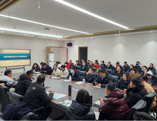 2025年1月6日下午,运动训练学院在网球馆2楼会议室召开2024年度学院总结会,全体教职工参会。会议由学院院长杨成波主持。