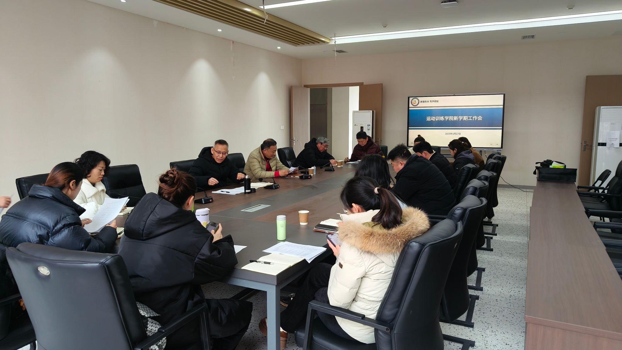 2025年2月27日下午,运动训练学院在网球馆2楼会议室召开了新学期工作会。学院领导及各室、办负责人参加会议,会议由杨成波院长主持。