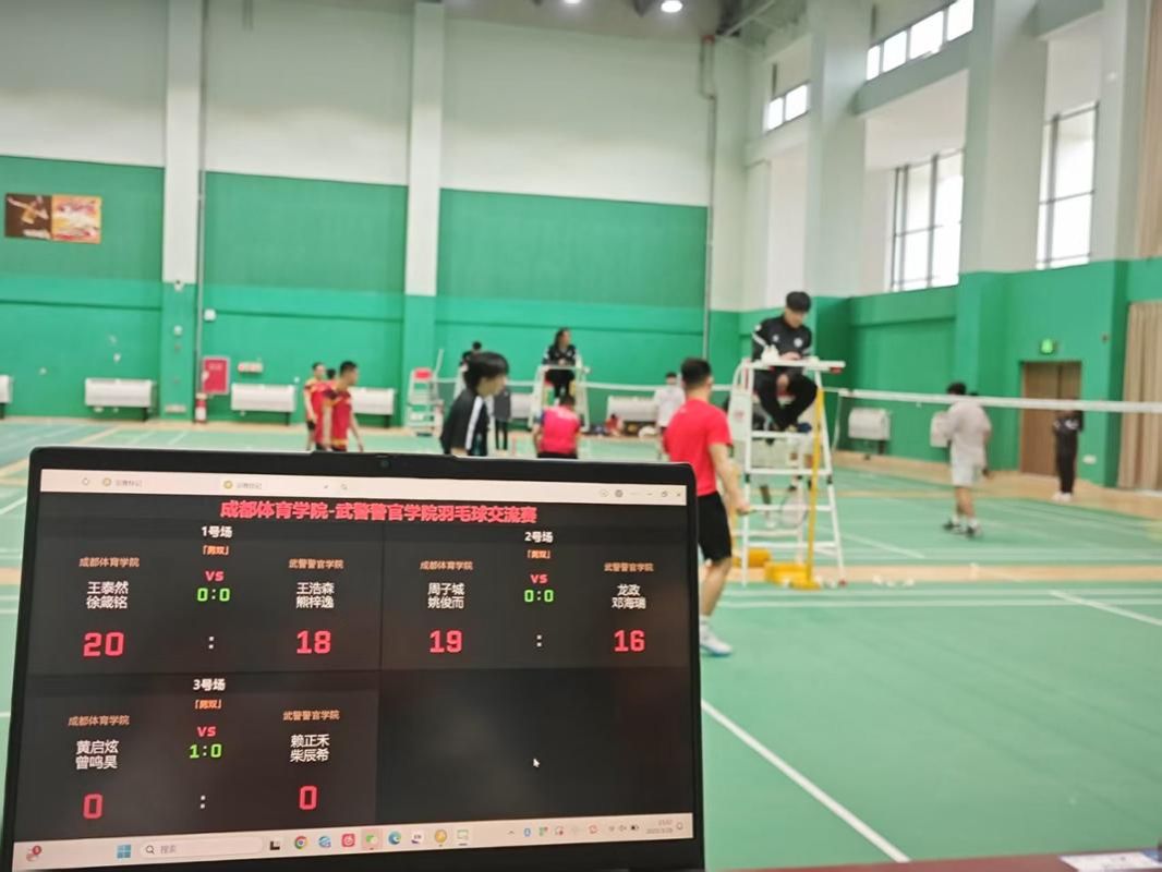 本次交流赛以“以球会友、互学互鉴”为主题,设置男单、男双等多个项目,并采用小程序记分执裁,大屏显示模式,为两校队员提供技战术对抗与执裁实践的双重锻炼平台。武警警官学院赵队长表示:“羽毛球看似是个人项目,但每一分的背后都离不开团队协作和集体荣誉感,这与军人‘听党指挥、能打胜仗’的信念一脉相承。”交流活动中,武警学员向体院学子分享了日常训练中融入的党史军史教育、边疆戍边故事等思政案例。此次交流赛创新采用“竞技+思政”双线并行的模式,让体育学子在感受军人作风中厚植爱国主义情怀,武警学员则在与专项运动员的切磋中拓宽战术思维。