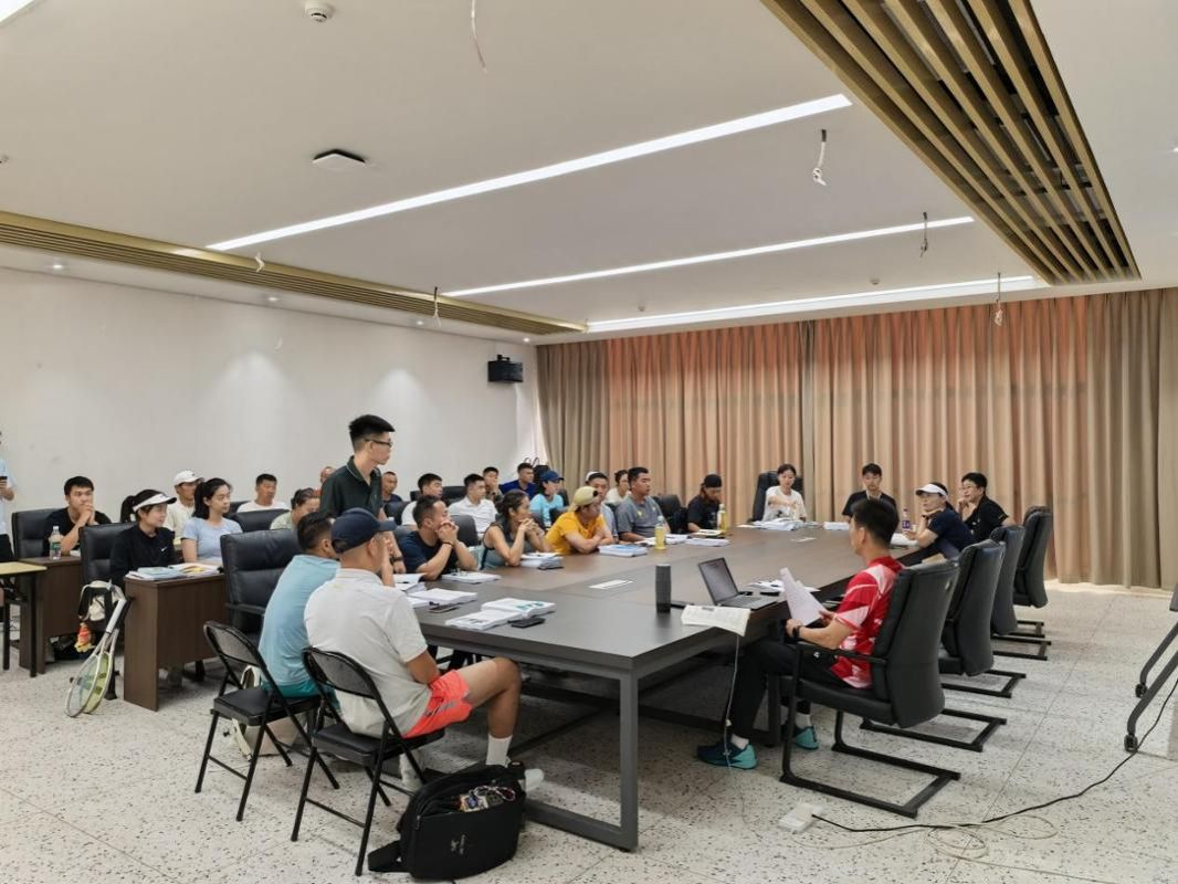 8月18日上午,中国网球协会B级教练员培训班导师及全体学员参加了开班仪式,由运动训练学院网球教研室教师陶玮健主持。