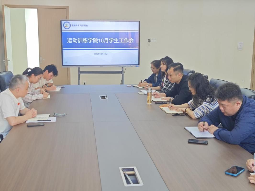 10月13日下午,运动训练学院在网球馆二楼会议室召开学生干部工作例会,学院全体学工干部参会。