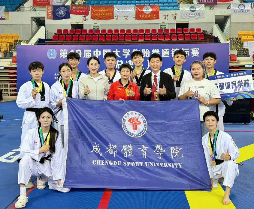 成都体育学院跆拳道代表队下设竞技队与品势队,队伍由优秀教练员理同新指导;跆拳道代表队始终秉持跆拳道 “坚韧、拼搏、礼仪、廉耻” 精神,在训练中精益求精,在赛场上奋勇争先,以扎实的专业功底和出色的竞技表现,成为学院体育竞技风采的重要展示窗口,在全国大学生赛事中持续书写佳绩,为校争光。