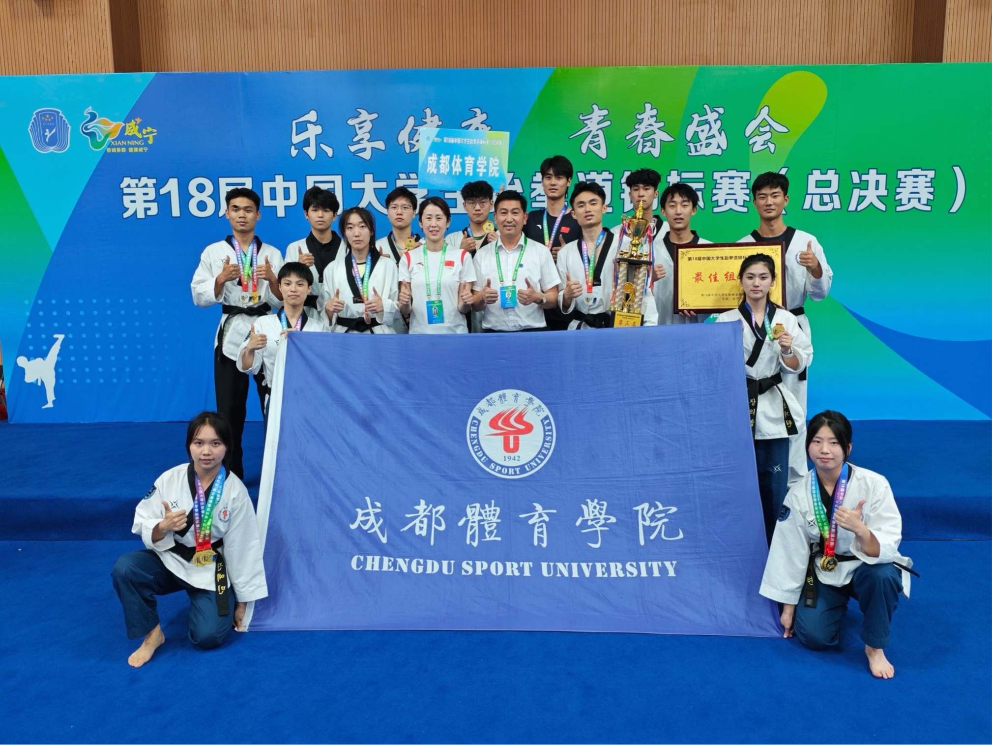 在竞技的征途上,成都体育学院跆拳道代表队如璀璨星辰闪耀!竞技队凭无畏拼搏之势,把赛场变为战场,用拳脚丈量荣耀的距离;品势队以优雅刚劲之姿,将动作化作艺术,在赛场上勾勒出坚韧与精准的完美轮廓。